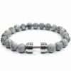 Das Herrenarmband mit Hantelmotiv ist eine einzigartige Kombination aus Stil und Funktionalität, die die Aufmerksamkeit jedes Sportliebhabers auf sich ziehen wird. Für seine Herstellung wurden die hochwertigsten Lavasteine und Onyx verwendet. Der Lavastein ist für seine poröse Struktur und seine natürliche Beständigkeit bekannt und symbolisiert Stärke und Ausdauer - Qualitäten, die für jeden unerlässlich sind, der seine Ziele sowohl im Fitnessstudio als auch im Alltag erreichen möchte. Der Onyx hingegen ist ein Stein mit einer tiefschwarzen Farbe, der dem Armband Eleganz und Klasse verleiht und gleichzeitig Entschlossenheit und Zuversicht symbolisiert.