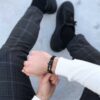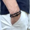 Alle Elemente des Sets sind auf ein strapazierfähiges, elastisches Silikonband mit einer Stärke von 0,8 mm aufgezogen, das widerstandsfähig gegen Dehnung und Abrieb ist. Dank unserer langjährigen Erfahrung in der handgefertigten Schmuckproduktion verwenden wir Materialien, die sich ideal für den täglichen Gebrauch eignen – auch für aktive Männer.