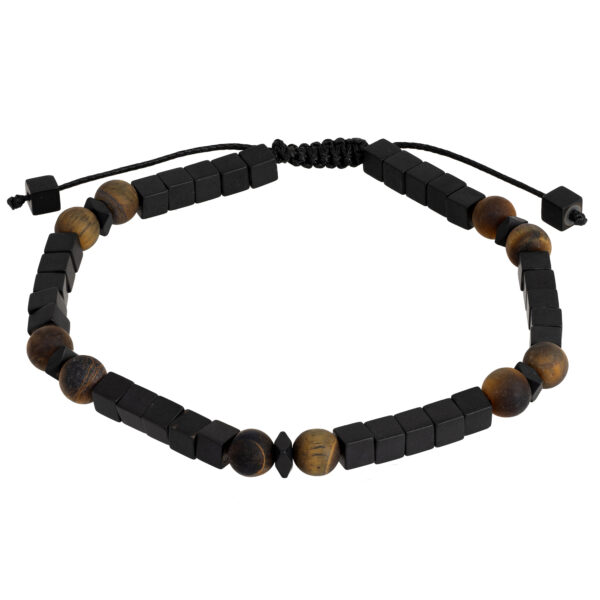 Das Armband besteht aus kubischen Hämatitwürfeln, die harmonisch mit den Perlen der Tigeraugensteine zusammenspielen. Darüber hinaus verleihen mattschwarze Hämatit-Abstandshalter dem Ganzen einen eleganten Look und einen einzigartigen Kontrast. Dieses unkonventionelle Design zieht die Aufmerksamkeit auf sich und unterstreicht den persönlichen Stil eines jeden Mannes.