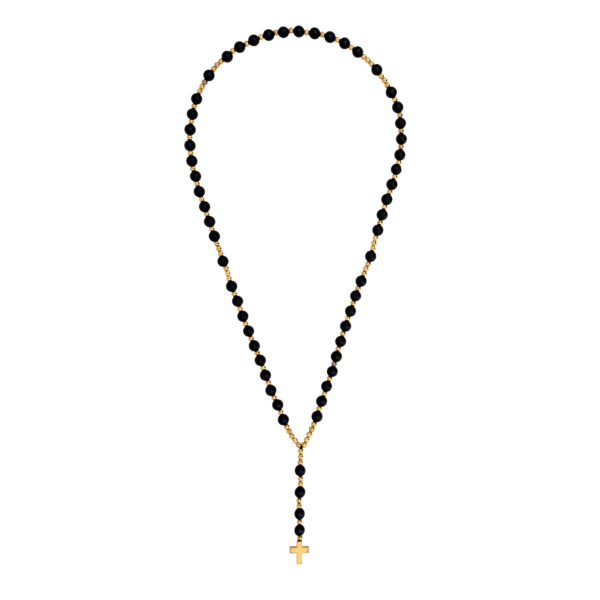 Die goldene Rosenkranz-Halskette ist ein einzigartiges Accessoire, das dank sorgfältiger Handarbeit mit Schwerpunkt auf den feinsten Details entstanden ist. Ihr einzigartiges Design begeistert schon auf den ersten Blick. Die goldenen Elemente verleihen ihr Noblesse und Raffinesse und machen sie zu einem außergewöhnlichen Schmuckstück für jedes elegante Styling.