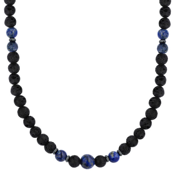 • Steine: Lapislazuli, vulkanische Lava 6 mm, Hämatit-Rondellen