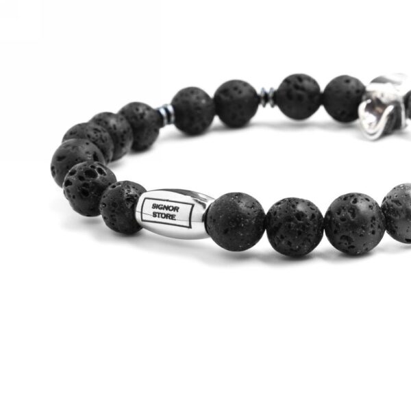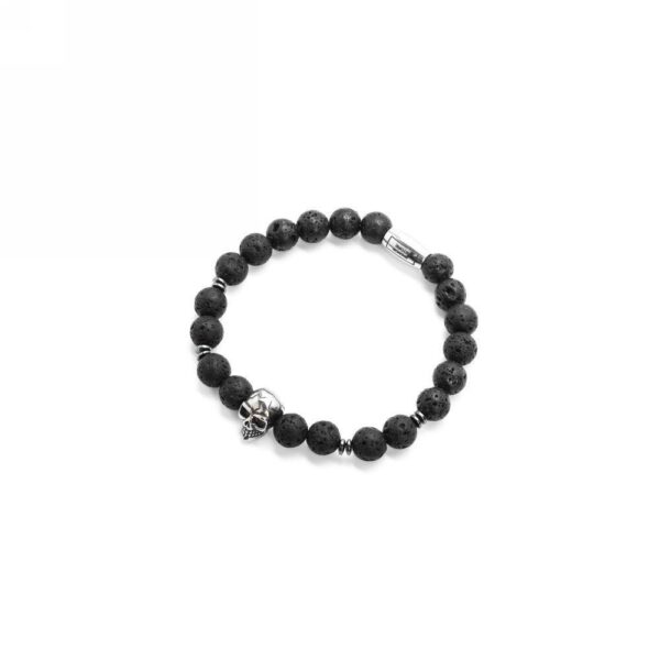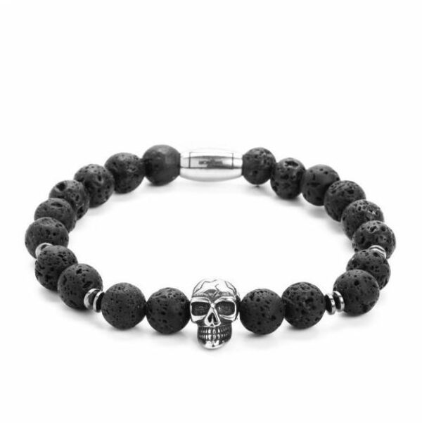 Ein Totenkopf aus hochwertigem Edelstahl, Halbedelsteine und feine Hämatit-Abstandshalter - das ist das Lava Silver Skull Armband. Es wird die Aufmerksamkeit auf sich ziehen und Ihren Stil unterstreichen.