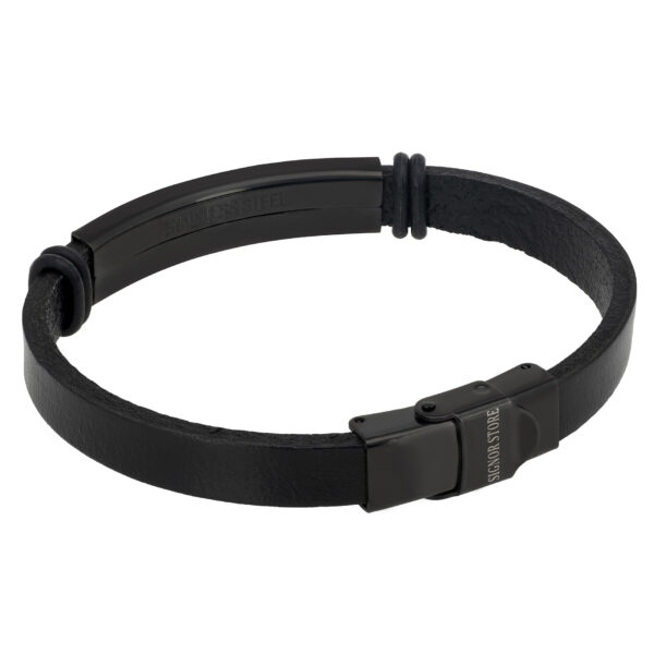Das Armband verfügt über eine robuste Schließe in Form eines silbernen Schnappverschlusses, der Funktionalität mit Ästhetik verbindet. Sowohl die Schließe als auch die Platte sind aus hochwertigem Edelstahl gefertigt - ein Material, das korrosions- und abriebfest sowie feuchtigkeitsresistent ist. Die Kombination aus schwarzem Leder und hellen metallischen Details verleiht dem Armband einen eleganten, vielseitigen Look, der sowohl für alltägliche als auch für formellere Outfits geeignet ist.
